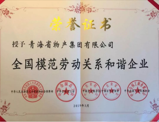 由青海省人力資源和社會保障廳、青海省總工會、青海省企業(yè)聯(lián)合會/企業(yè)家協(xié)會、青海省工商業(yè)聯(lián)合會共同推薦申報,青海省物產(chǎn)集團(tuán)有限公司、青?;ブ囡乒煞萦邢薰?、正平路橋建設(shè)股份有限公司榮獲全國模范勞動關(guān)系和諧企業(yè)光榮稱號,西寧經(jīng)濟(jì)技術(shù)開發(fā)區(qū)東川工業(yè)園區(qū)榮獲全國模范勞動關(guān)系和諧工業(yè)園區(qū)光榮稱號,受到了國家人力資源和社會保障部、中華全國總工會、中國企聯(lián)、全國工商聯(lián)的隆重表彰。