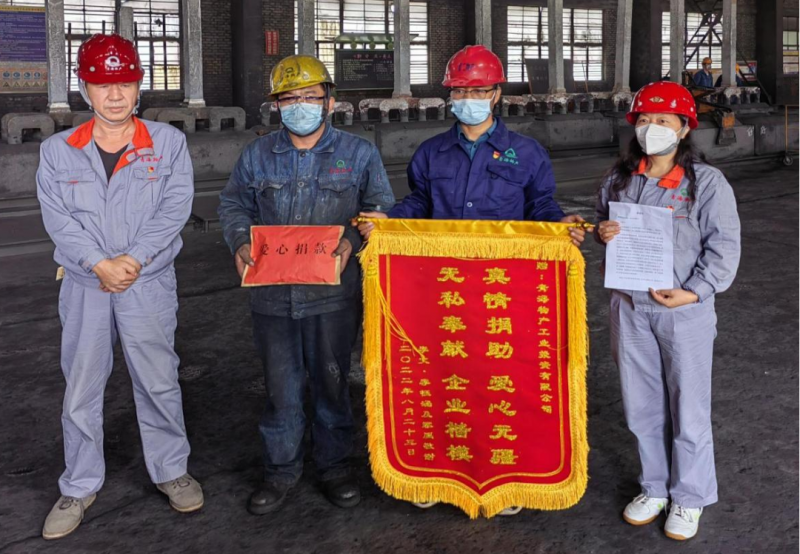 (物產(chǎn)工投公司 訊 任蕊/文攝)“謝謝公司領(lǐng)導(dǎo)和同志們的關(guān)心,謝謝、謝謝……”當(dāng)物產(chǎn)工投公司陽極組裝車間職工李文雙手接過這包充滿了關(guān)心和溫暖的愛心捐款時,強(qiáng)忍的淚水早已決堤,疲憊的臉上多了一絲幸福和希望。